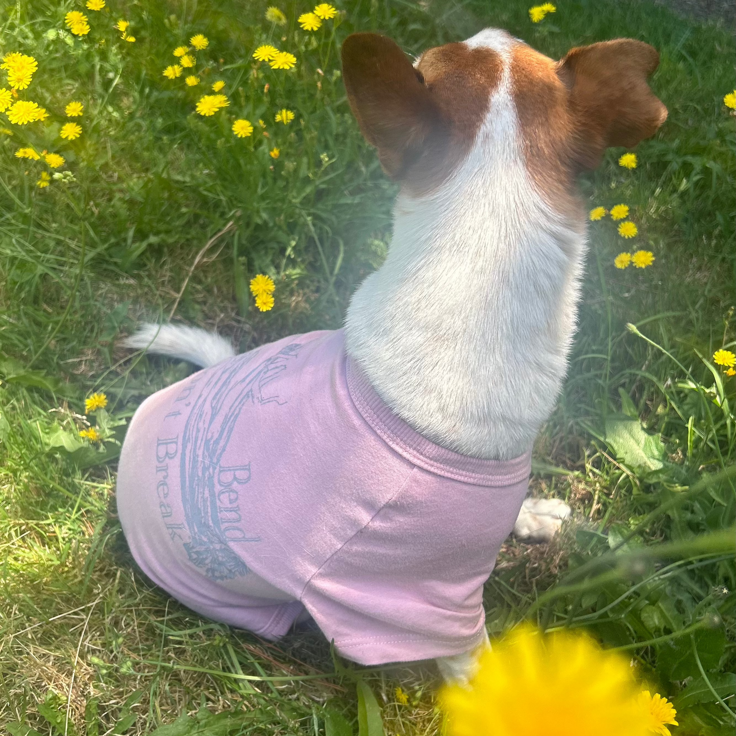 Soft, breathable, and built to move. The Bend Don't Break Dusty Pink Tee is your dog's perfect warm-weather companion. Featuring our signature hand screen-printed design on a gentle dusty pink base, this lightweight tee combines comfort with conscious craftsmanship.