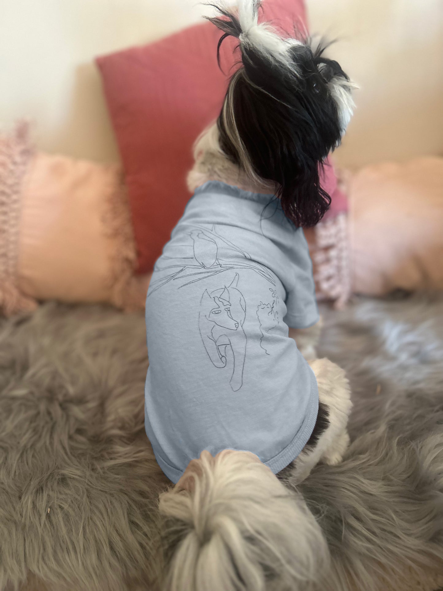 Lightweight and breathable, the Charlie and the Bird Tee in Dusty Blue is handcrafted in Melbourne using 190GSM Good Earth Cotton®. Featuring an original hand screen-printed design, this piece celebrates regenerative farming practices rooted in the Kamilaroi Nation, NSW. Thoughtfully made for conscious fur parents who value both style and sustainability.